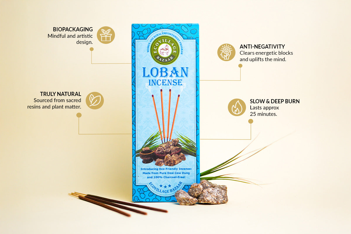 Made with hand-rolled resins and herbs, our Loban incense calms the mind and sanctifies the space. Light it during meditation, prayer, or to end your day with clarity.